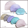 きらきらのラメ感&パステルカラーの可愛らしさと、厚手レザーで高級感も兼ね備えた半円型のポーチ。普段持ち歩く小さめの化粧ポーチとしてちょうど良いサイズです。