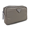 深みがあって高級感のあるブラウングレーのPRADAポーチ!!光の加減によってココアのようなブラウンのようなグレーのようなお色です。【クリックポスト対応】