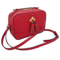 真っ赤なモノグラムレザーが挿し色にとっても素敵。エンボス加工を施したモノグラム・アンプラント レザーに、遊び心あるタッセルや艶やかなゴールドカラーのメタルをあしらった「サントンジュ」。コンパクトながら女性の毎日の必需品を収納できるデザインで、デイタイムからイブニングシーンまで活躍します。しなやかなトップハンドルで手持ちとしても、調節可能なショルダーストラップで肩にかけても斜め掛けでもご使用いただけます。ご希望があればミラノのヴィトンで購入したままの状態でお届けできますのでプレゼントにも最適です。