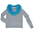 鮮やかなブルーのふわふわでボリュームのあるフォックスファーがゴージャスで素敵なブルーガールのカーディガン。エレガントはもちろん、カジュアルスタイルにも合わせるとカッコ良いと思います。