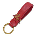 アイコニックなトライアングル型のエナメルメタルチャームがアクセントになった「サフィアーノ」レザー(牛革)のプラダのキーホルダー。