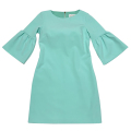 ボリューム袖にストンとしたシルエットが上品で可愛らしいワンピース。爽やかなミントブルーも珍しくて素敵。