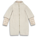 体をゆったりと包み込むようなコクーンシルエットと上品なオートミールのような淡いベージュが、どのような装いにもエレガントさと個性を添えるアイテムとして活躍。実用性を考えたディテールにもこだわったモデルです。 生地はモヘヤ混のウールで立体感のあるふわふわとした上品な素材。 ビブは、Hernoのアイコニックな素材であるナイロン ウルトラライト製。優れた撥水性と、シルクのような極上の手触りを兼ね備えた革新的なファブリックです。 ビブ(前~襟・袖のナイロン部分)は取り外し可能。